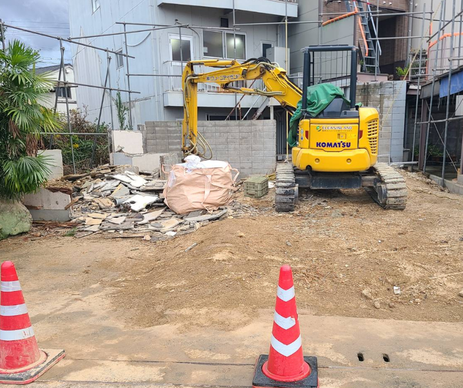 コンクリート土間とブロック塀の解体撤去のあわせて行いました。